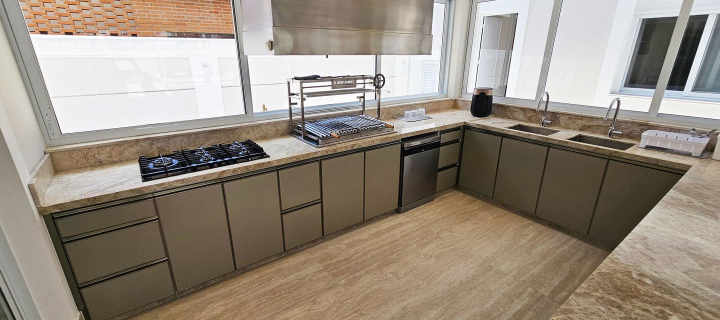 Diferente dos móveis comuns em MDF, nossas cozinhas são produzidas em Alumínio e ACM (Materiais modernos, resistentes e feitos para durar).